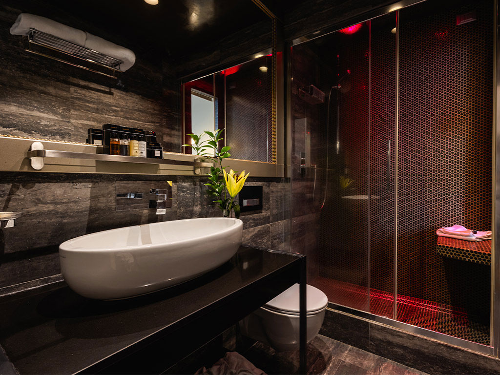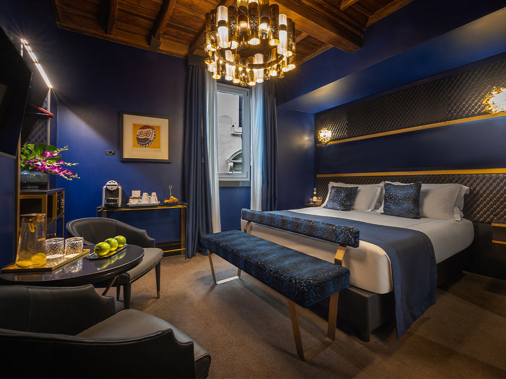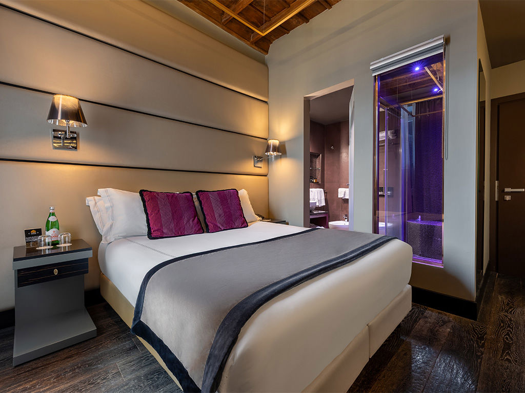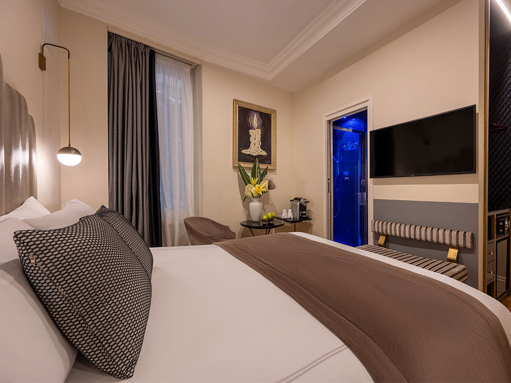 Les chambres supérieures avec chromothérapie offrent un design moderne, climatisation intelligente, jacuzzi avec bain turc ou une douche avec douche effet pluie et chromothérapie, climatisation, télévision LCD HD de 42′ avec toutes les chaînes du monde dans votre langue et programme de divertissement avec système d'information, home cinéma, set de courtoisie, insonorisation maximale, Nespresso gratuit.
